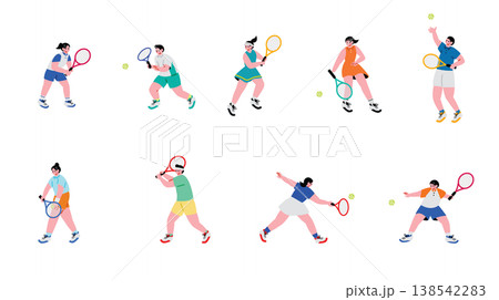 一組色彩鮮豔的網球運動員插圖