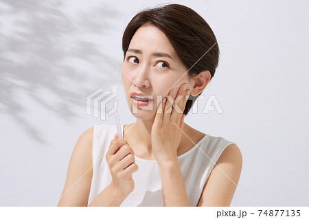 牙刷牙痛的中年女人