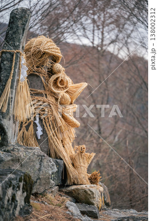 蘆之尻道祖神(路邊守護神)面具特寫 [長野市大岡市]