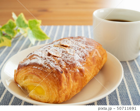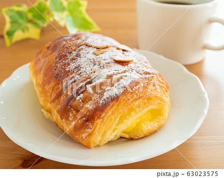Cream-Filled Almond Pastry on a Plate with Eggs