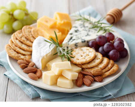 Rustic Cheese Platter with Grapes, Nuts, and Honey