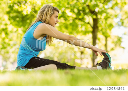 Fit blonde stretching in the park
