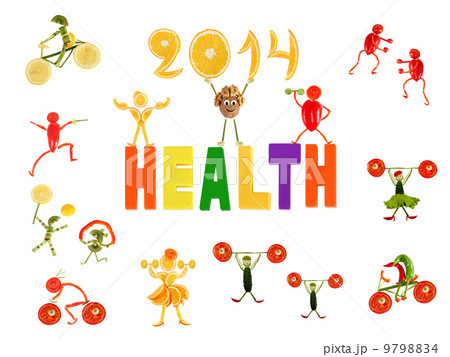 Healthy eating. Little funny people made of vegetables and fruit