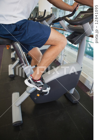 Fit man working out on the exercise bike