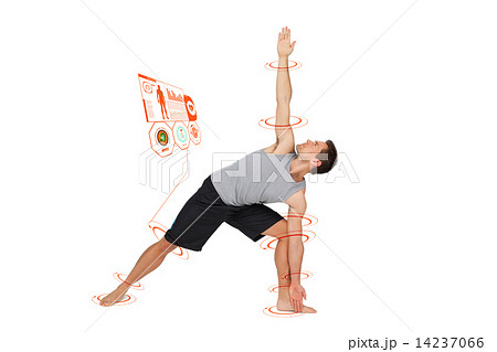 Composite image of fit man stretching his legs and arms