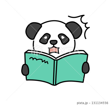 可愛的熊貓角色在讀書