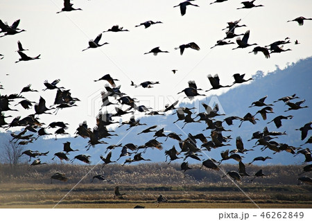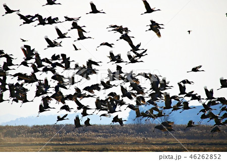 鳥,鳥,軍事,花園,濕地,蘆葦,黑鶴,天然紀念物