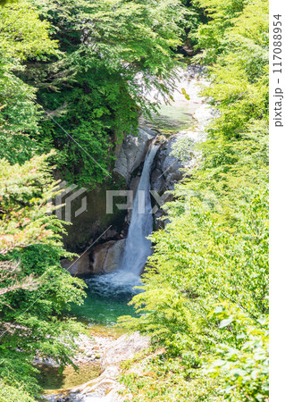在山梨縣北斗市白州町拍攝被日本百佳水域的清新綠色所環繞的小白川峽谷和山之瀧。
