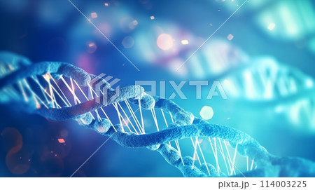 Abstract DNA structure biotechnology design concept with hexagonal texture in blue background.