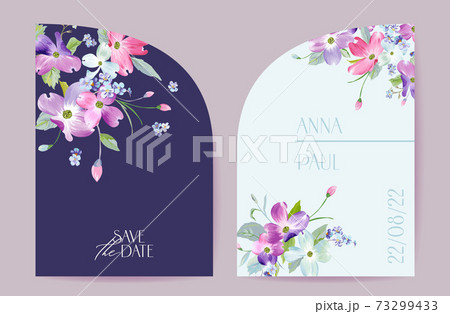 Wedding spring blooming floral vector card. Dogwood blossom flowers invitation. Watercolor template frame