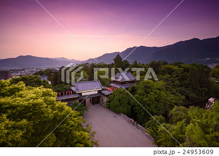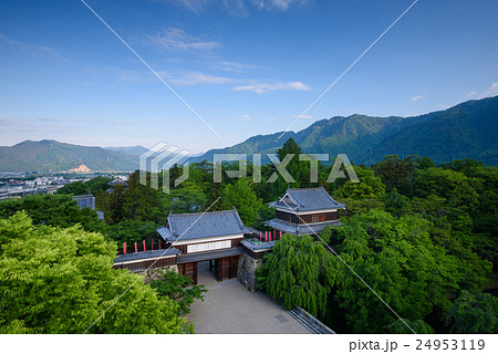 長野縣上田市的初夏、綠意盎然的上田城跡公園、東虎口櫓門
