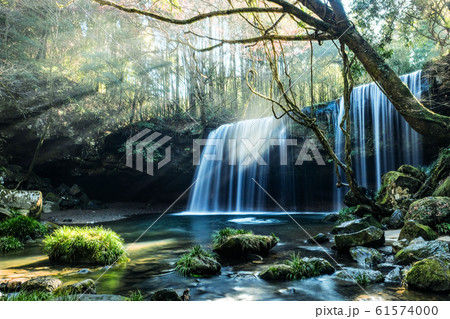 美麗光芒的鍋瀑布(熊本縣小國町)