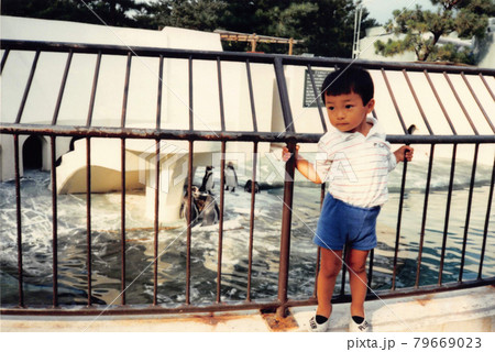 企鵝和小男孩在水族館