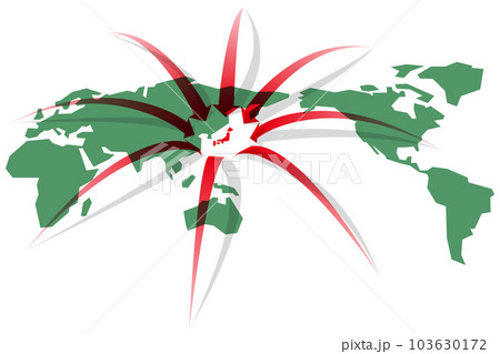 從日本向各個方向延伸的箭頭世界地圖矢量圖