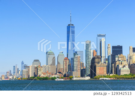 Vibrant sunny view of Chicago downtown skyline under a blue sky
