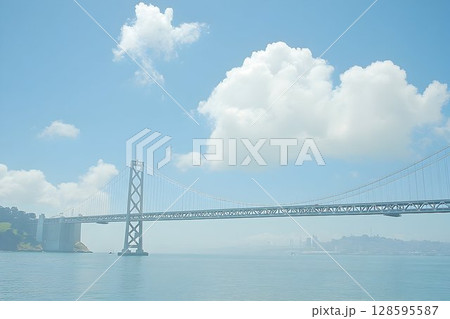 Picturesque view of Bay Bridge with clear sky, water, and clouds formation