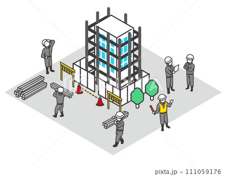 Optimism fills the air on a sunny construction site. A team of male and female developers, representing various disciplines, gathers to discuss the progress of their apartment complex project.