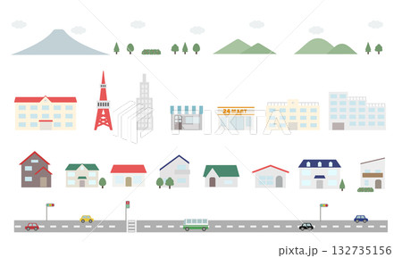 圓形街道景觀插圖 - 簡潔可愛的背景素材