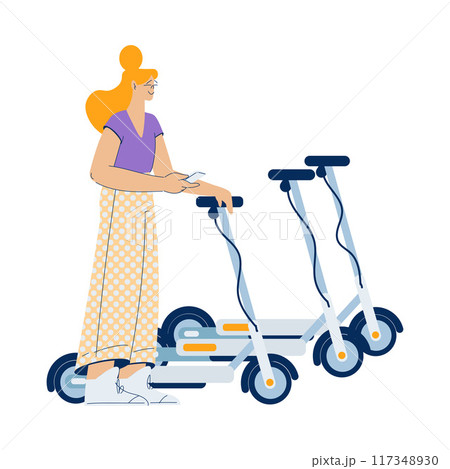 Electric Transport with Woman Character Ride Scooter Vector Illustration