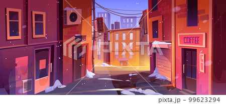 Quiet winter city street corner urban cityscape
