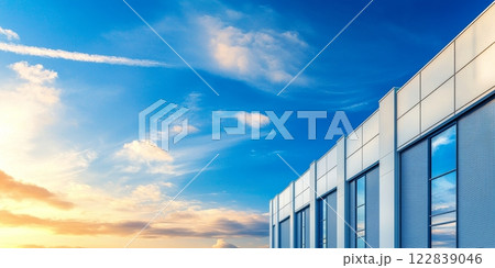 Modern Glass Building Reflects Blue Sky and Clouds with Architectural Design.