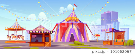 Carnival fun fair, amusement park with circus tent