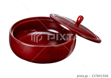 白色背景上的帶蓋漆器容器的剪紙圖案。