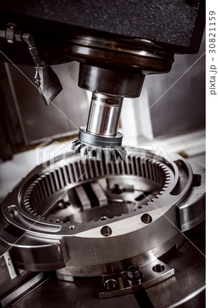 The multi tasking CNC lathe machine Swiss type bore cutting process the metal tube parts in the light blue scene.
