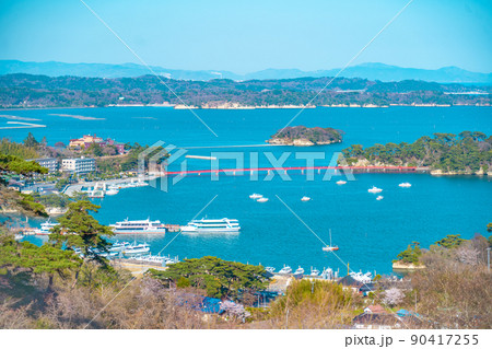 日本遺產松島西行松公園從風景區俯瞰白井觀音天文台福浦島和衝島