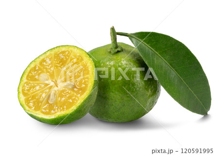 Lemon lime fruit with green leaves