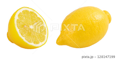 Ripe lemon with half isolated on white background with full depth of field.