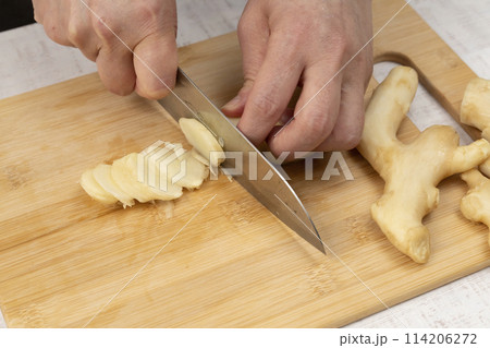 製作加里(gari),醃製的新鮮生薑,具有清爽的香氣和新鮮度。