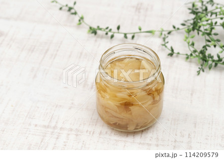 甜醋醃製的新鮮生薑 將生薑放入罐子中