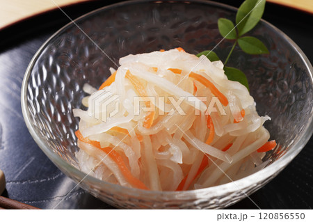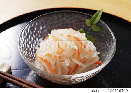 Namasu,紅和白,蘿蔔,胡蘿蔔,醋食,osechi,新年,新年,新年快樂,新年賀卡,幸運符,插圖,新年盤子
