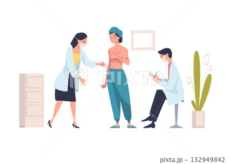 Plastic Surgery with Doctor and Patient at Body Correction in Aesthetic Beauty Clinic Vector Illustration