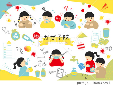 疾病插圖集線圖簡單圖示過敏病毒宿醉發燒概況