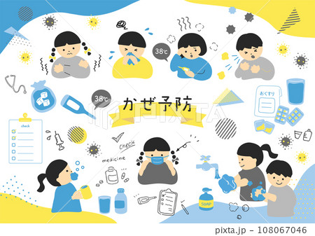 用於解釋冠狀病毒、流感和感冒等症狀的插圖