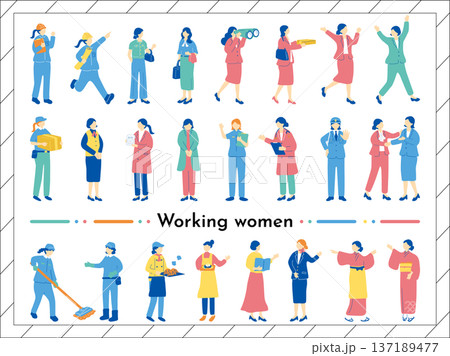 一組身著工作服在工廠工作的女性的各種職業場景(向量圖)