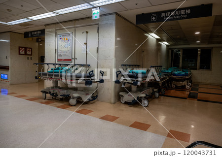 醫院病床位置。 病人康復出院後,病床上已空無一人。