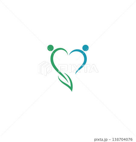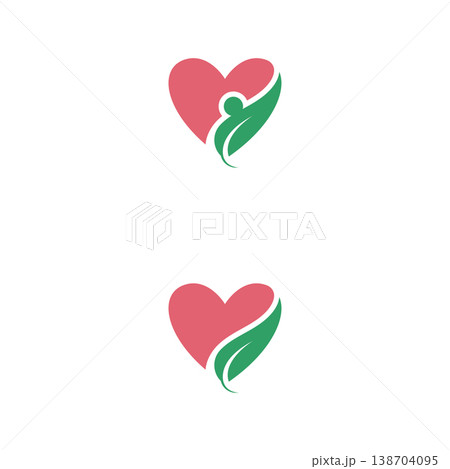 healthy care heart leaf logo design