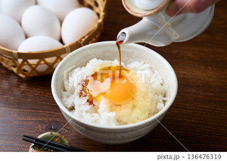 將醬油淋在生蛋上