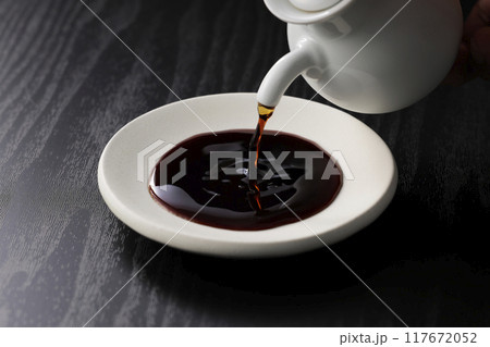 將醬油倒入盤中