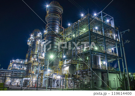 山口縣:夜晚的石化園區,巨大的儲槽顯得格外引人注目