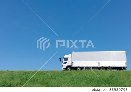 從前面看到的白色卡車的插圖[送貨、運輸、送貨上門、汽車、大型]