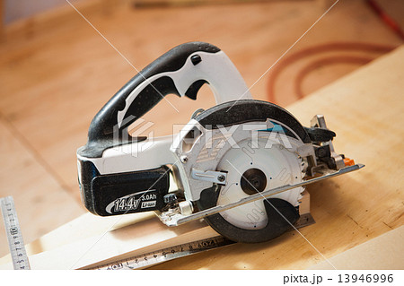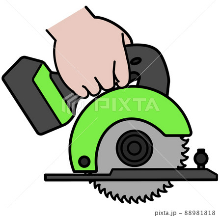 用手拿著圓鋸的插圖