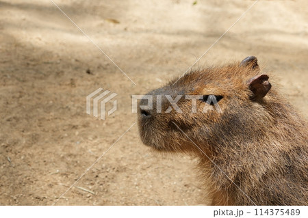 手繪插圖:一隻坐著抬頭的可愛小豬