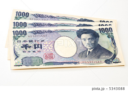 野口秀世舊千日元鈔票飛走的略寫實插畫