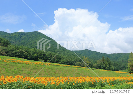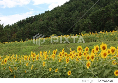 [夏季材料]盛開的向日葵[長野縣]