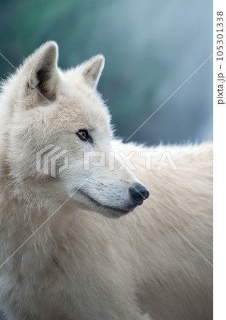 White wolf on the background of the mystical forest.