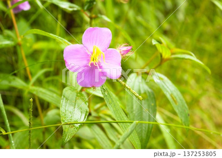 被雨水浸濕的粉紅野牡丹花(尼泊爾)